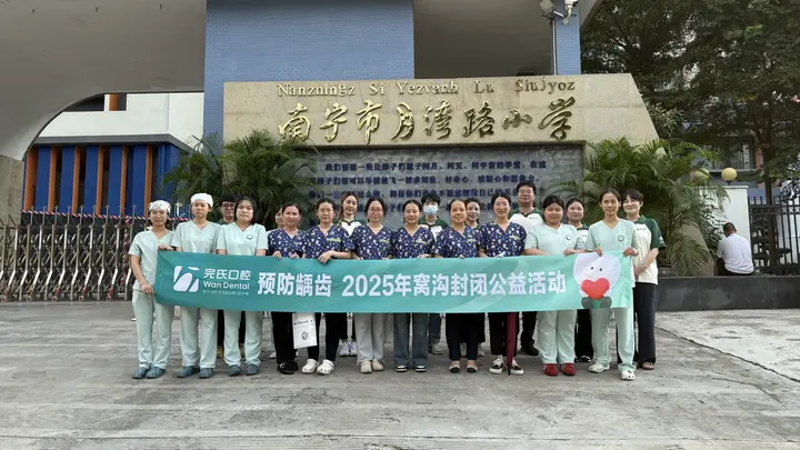 截至2025年,完氏口腔累计为超20万适龄儿童提供免费口腔筛查与窝沟封闭服务,覆盖南宁市多所小学,封闭“六龄牙”超3万颗,还获评“广西中西部地区儿童口腔综合干预项目”大使单位。